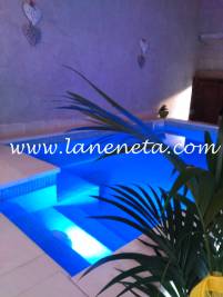 Patio con barbacoa. Terraza exterior con ping-pong, pequeño jardín. Piscina privada